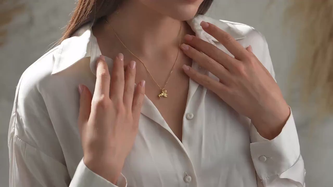 14K Solid Gold Guardian Angel Necklace: Religious Charm Pendant