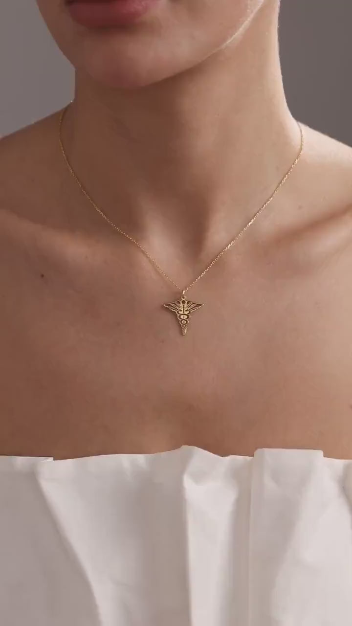 Caduceus Necklace: 14K Gold or Sterling Silver Medical Jewelry
