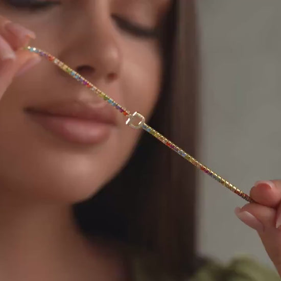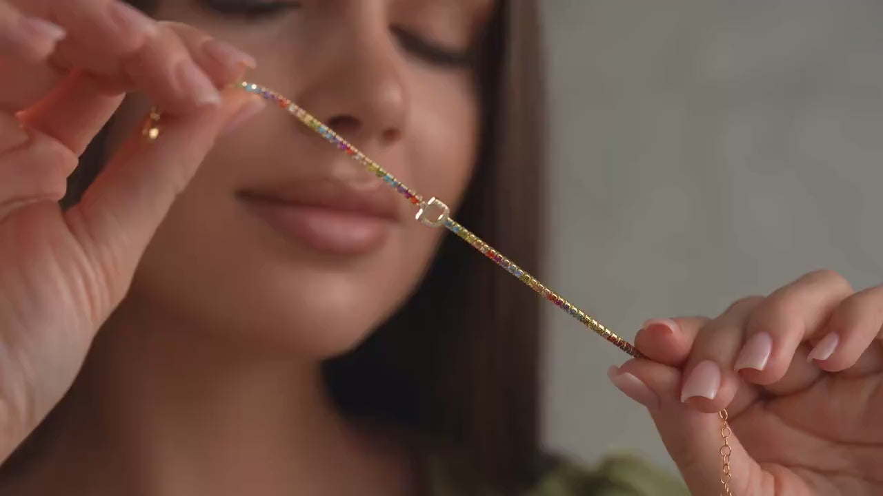Personalized CZ Initial Tennis Bracelet: Sterling Silver Rainbow Jewelry