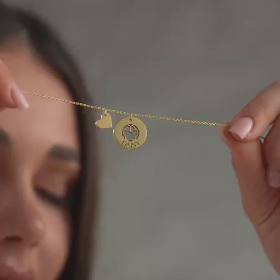 โจ Paw Name Necklace with Heart Charm - A Loving Tribute to Your Pet โจ