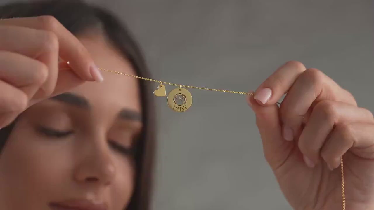 Celebrate the bond with your furry friend with this customizable paw print name necklace, featuring a sweet heart charm. Perfect as a gift for pet lovers or a keepsake to remember a beloved companion.