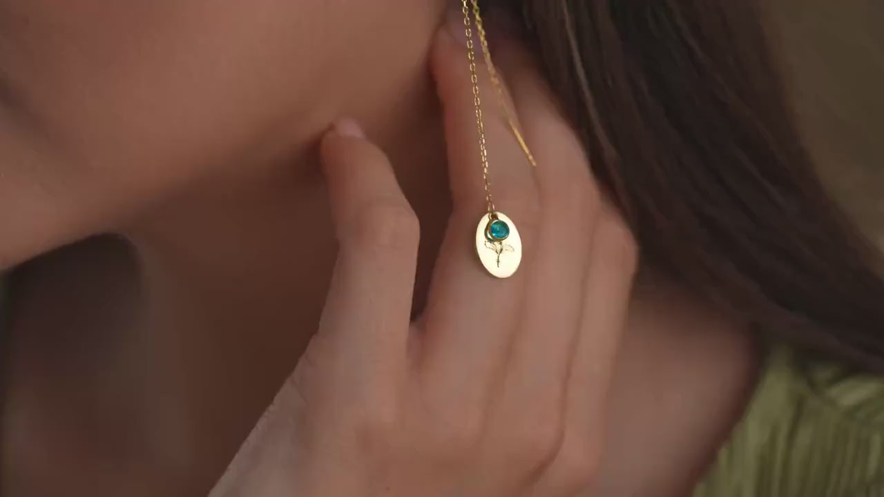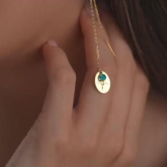 Add subtle beauty to your everyday style with this gold threader earring. Featuring an oval charm engraved with a delicate rose and accented by a brilliant blue stone, it's the perfect blend of minimalism and charm.